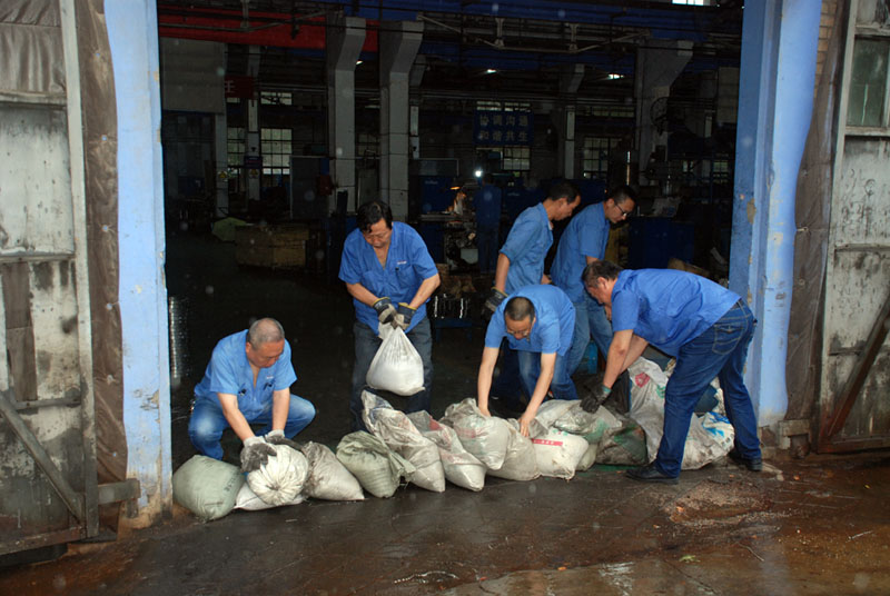 為了確保職工生命安全及企業(yè)財產(chǎn)不受損失,當(dāng)天上午8點剛上班,星火機(jī)床公司防汛領(lǐng)導(dǎo)小組緊急行動,冒著大雨排查生活區(qū)、廠區(qū)排洪情況及安全隱患并商議解決辦法。