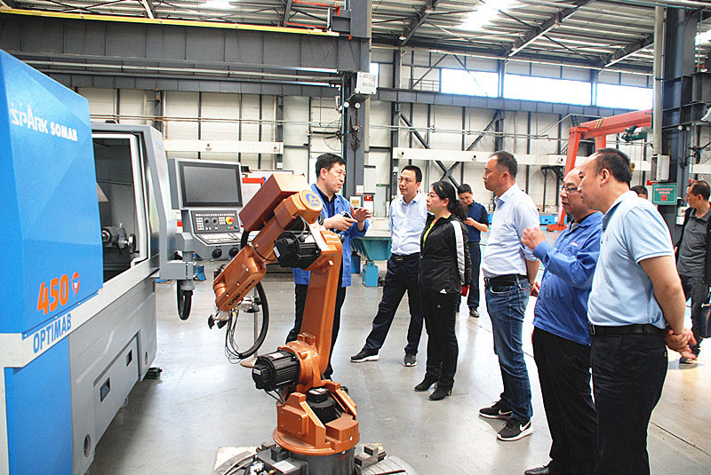 王雪芹一行來到機(jī)械裝備公司生產(chǎn)現(xiàn)場(chǎng),參觀了不同系列的機(jī)床產(chǎn)品。劉勝匯報(bào)了企業(yè)推進(jìn)“三化”改造工作情況,并對(duì)公司各類產(chǎn)品的用途、性能一一作了介紹。(康永明)