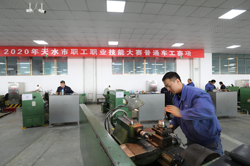 為大力弘揚(yáng)勞模精神、工匠精神,積極倡導(dǎo)勞動(dòng)光榮、技能寶貴的時(shí)代風(fēng)尚,著力培養(yǎng)一支知識型、技能型、創(chuàng)新型勞動(dòng)者大軍,為全市經(jīng)濟(jì)社會(huì)高質(zhì)量發(fā)展提供堅(jiān)實(shí)的智力支撐和人才保障。11月7—8日,由天水市總工會(huì)、天水市人力資源和社會(huì)保障局、天水市科學(xué)技術(shù)局、天水市工業(yè)和信息化局主辦,甘肅機(jī)電職業(yè)技術(shù)學(xué)院、天水星火機(jī)床有限責(zé)任公司、天水風(fēng)動(dòng)機(jī)械有限責(zé)任公司、甘肅益康家政養(yǎng)老服務(wù)有限公司承辦的“2020年天水市職工職業(yè)技能競賽”在甘肅機(jī)電職業(yè)技術(shù)學(xué)院舉行。技能競賽分理論考試和實(shí)際操作兩個(gè)環(huán)節(jié),來自全市14戶企業(yè)的車工、鉗工、銑工、鑄造工、磨工、電工、電焊工、起重裝卸機(jī)械操作工和育嬰員等9個(gè)通用工種的260多名一線產(chǎn)業(yè)工人參賽。