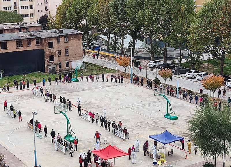 物業(yè)管理公司副經(jīng)理曹育紅,一邊頭戴小紅帽、身穿紅馬甲參加志愿服務活動,維持參加核酸檢測人員的秩序,一邊負責暖氣管道爆裂等突發(fā)情況的處置,保證供暖正常。