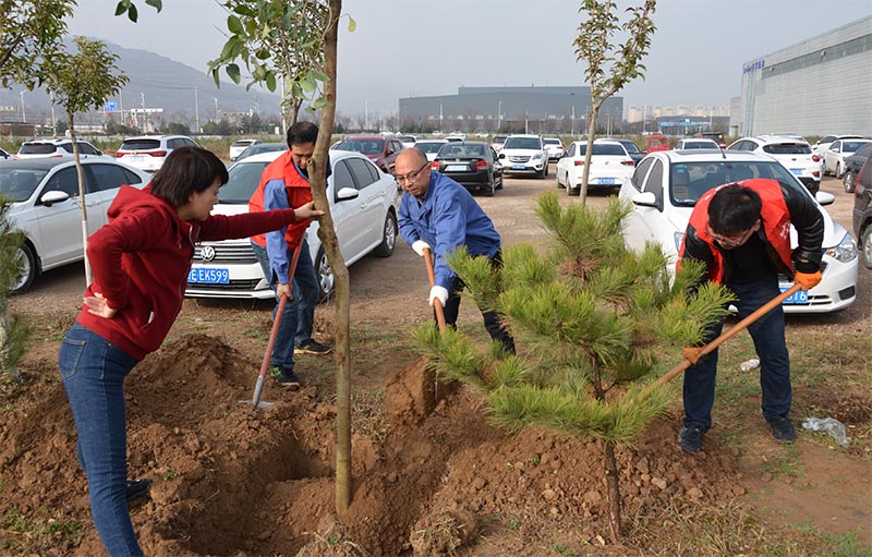 在“3.12”植樹節(jié)前后,星火機床公司組織鑄造、機械制造、機床裝備、機關、研銷、后勤等黨支部黨員干部職工70多人,開展了以“植樹播綠   美化環(huán)境”為主題的義務植樹活動。此次活動旨在增強企業(yè)員工的植綠護綠意識,引導大家做綠色家園的建設者、護衛(wèi)者。與往年不同的是,今年在兼顧觀賞性的同時,按照既“綠化”又“美化”的要求,物業(yè)公司特從陜西扶風苗木基地精挑細選了500株具有觀賞價值的紅葉李、大葉女貞樹種,為星火工業(yè)園區(qū)廠房周邊添植了新綠。