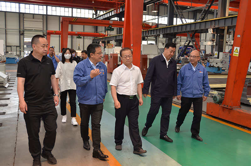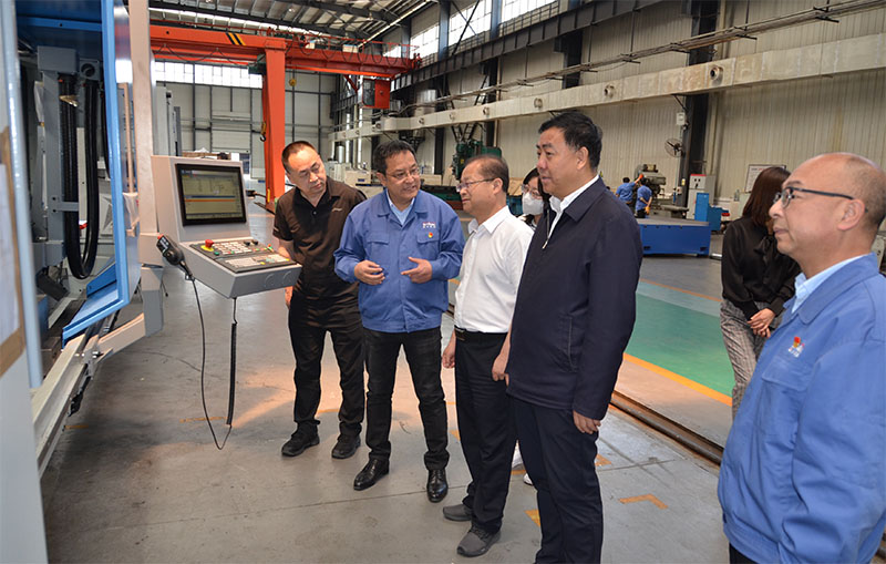 張軍禎聽取星火機(jī)床公司目前生產(chǎn)運(yùn)行、今年經(jīng)濟(jì)指標(biāo)、產(chǎn)品訂貨等情況介紹后,參觀了精密數(shù)控機(jī)床和大、重型機(jī)床產(chǎn)品。在參觀星火機(jī)床公司研發(fā)生產(chǎn)的數(shù)控重型臥式車鏜床時(shí)感嘆到:“這可是真正的大國(guó)重器?。 ?