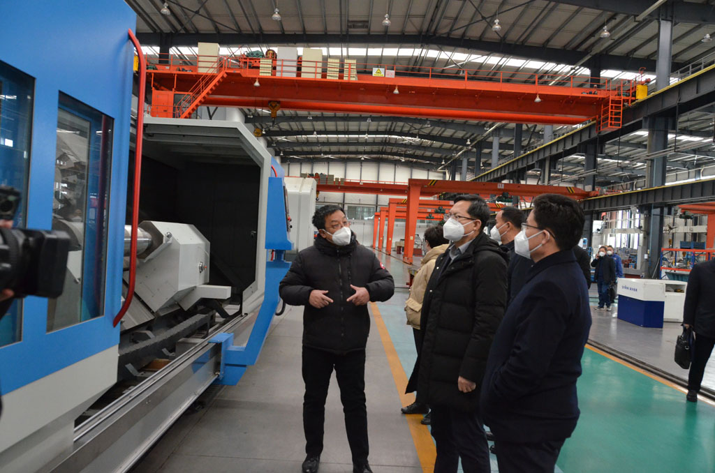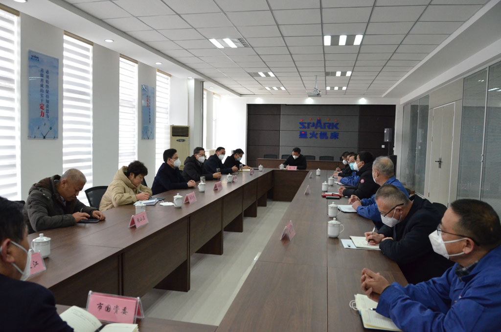 蔣保權向成廣平一行詳細介紹了公司的歷史沿革、產品研發(fā)、生產經營及未來發(fā)展規(guī)劃等情況。蔣保權說,近幾年,星火機床緊盯國家戰(zhàn)略需求,瞄準軍工、航天航空、新能源、鋼鐵、船舶、工程機械等行業(yè),在攻克關鍵領域核心技術、解決 “卡脖子”難題等方面做了不少工作,公司自主研發(fā)的多軸聯(lián)動數(shù)控纏繞機床形成了行業(yè)標準;借助法國索瑪子公司技術優(yōu)勢,聯(lián)合武漢理工研發(fā)生產的五軸聯(lián)動復合加工中心性能達到國際標準,基本實現(xiàn)替代進口。同時,為進一步做大做強做優(yōu)企業(yè),戰(zhàn)略重組了青海青重,一些促進企業(yè)實現(xiàn)高質量發(fā)展的智能化、綠色化轉型升級項目如機床研發(fā)設計檢測能力提升項目也逐步實施。如果能加入更強的國企平臺,星火將會有更廣闊的發(fā)展前景。