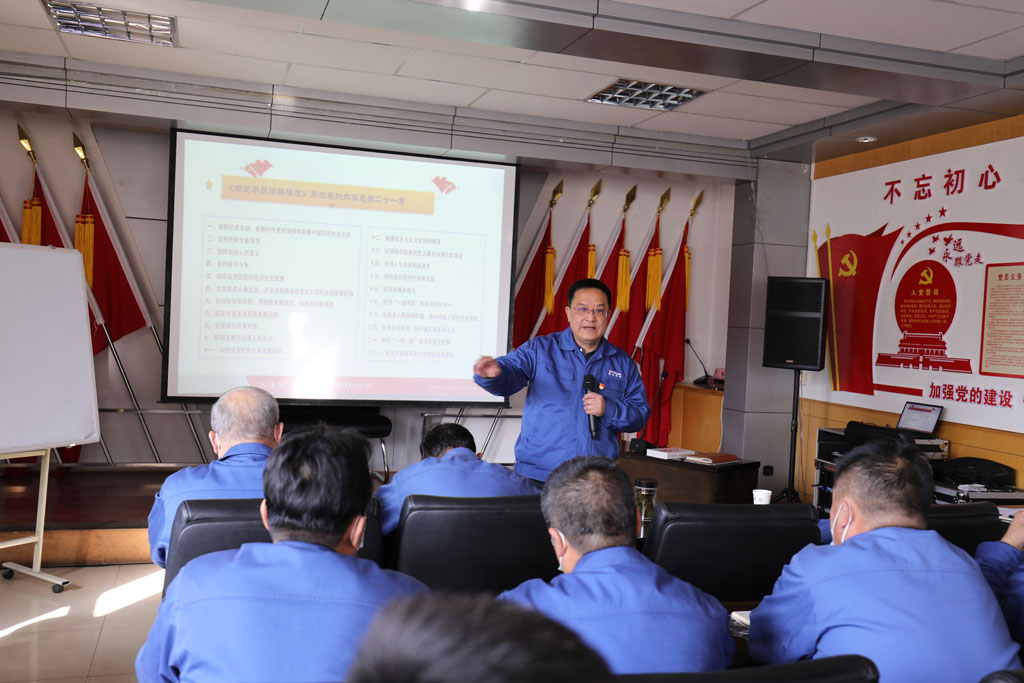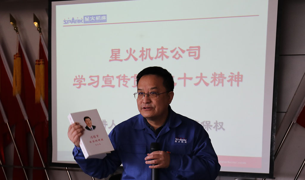 11月25日,星火機(jī)床公司黨委組織中層以上干部、黨支部書記、分會(huì)主席、青年骨干職工集體學(xué)習(xí)黨的二十大精神。集團(tuán)公司黨委書記、董事長蔣保權(quán)結(jié)合習(xí)近平治國理政思想就堅(jiān)持中國共產(chǎn)黨的領(lǐng)導(dǎo)、堅(jiān)持人民至上、保持高昂的斗爭精神和堅(jiān)定不移走高質(zhì)量發(fā)展之路等方面內(nèi)容講專題黨課。