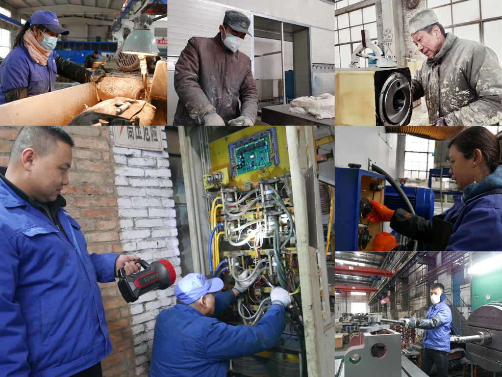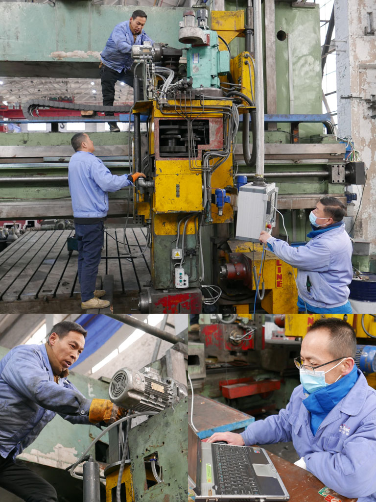 在機(jī)械制造公司大件工段,維修電工王師傅和安師傅正在仔細(xì)檢查著淬火機(jī)的各條線路。安師傅說,淬火機(jī)年前就“罷工”了,導(dǎo)致床身的生產(chǎn)進(jìn)度嚴(yán)重滯后。為了讓它盡早恢復(fù)作業(yè),他們天天干到晚上一兩點(diǎn),從放假到現(xiàn)在,休息了不到兩天時(shí)間。再看其他工段磨床、刨床、銑床、車床等機(jī)臺(tái)的師傅們,也是認(rèn)真研究圖紙,細(xì)心操作機(jī)器,全力保障產(chǎn)品加工質(zhì)量,為“搶進(jìn)度、保訂單”而馬不停蹄的忙碌著。