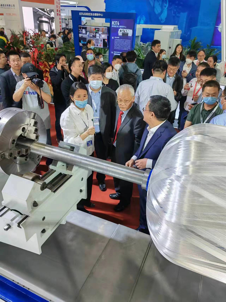 邱鋼、王黎明一行認真細致的參觀了星火機床集團公司展出的多軸聯(lián)動復合材料纏繞機床,詳細了解了該機床的性能參數(shù)、技術優(yōu)勢以及應用領域,并對星火機床技術創(chuàng)新工作給予充分肯定。