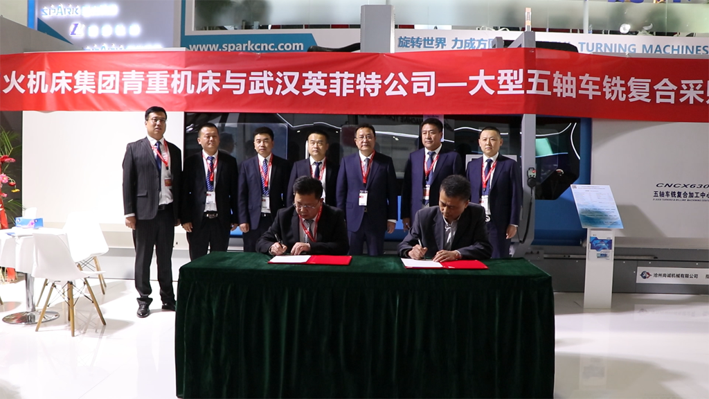 4月11日,星火機(jī)床集團(tuán)青重機(jī)床在展會現(xiàn)場重點(diǎn)與客商簽訂大型五軸車銑復(fù)合采購項(xiàng)目、鐵路車輪車床出口韓國項(xiàng)目等合同。三天來,星火機(jī)床集團(tuán)公司展出的高端五軸聯(lián)動(dòng)數(shù)控機(jī)床、多軸聯(lián)動(dòng)復(fù)合材料纏繞機(jī)床、自動(dòng)化加工數(shù)控車輪車床、高精度數(shù)控車床等產(chǎn)品吸引了上萬人次國內(nèi)外新老客戶的參觀與洽談,并促成多筆訂單,收獲豐厚。