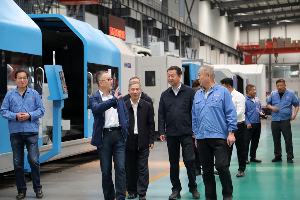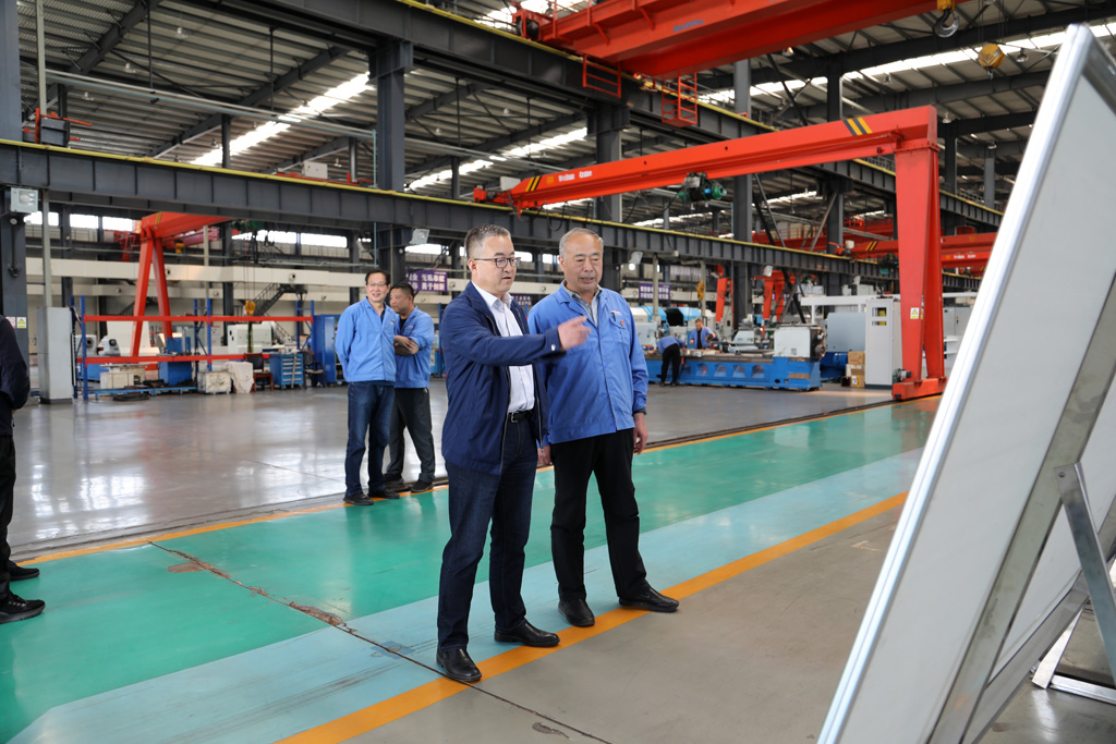 在裝配車間,趙錦銘向王虎中一行介紹了企業(yè)的歷史沿革、發(fā)展變化,匯報了企業(yè)科技創(chuàng)新、市場占有率,以及一季度工業(yè)產(chǎn)值、項目建設(shè)進(jìn)展等。