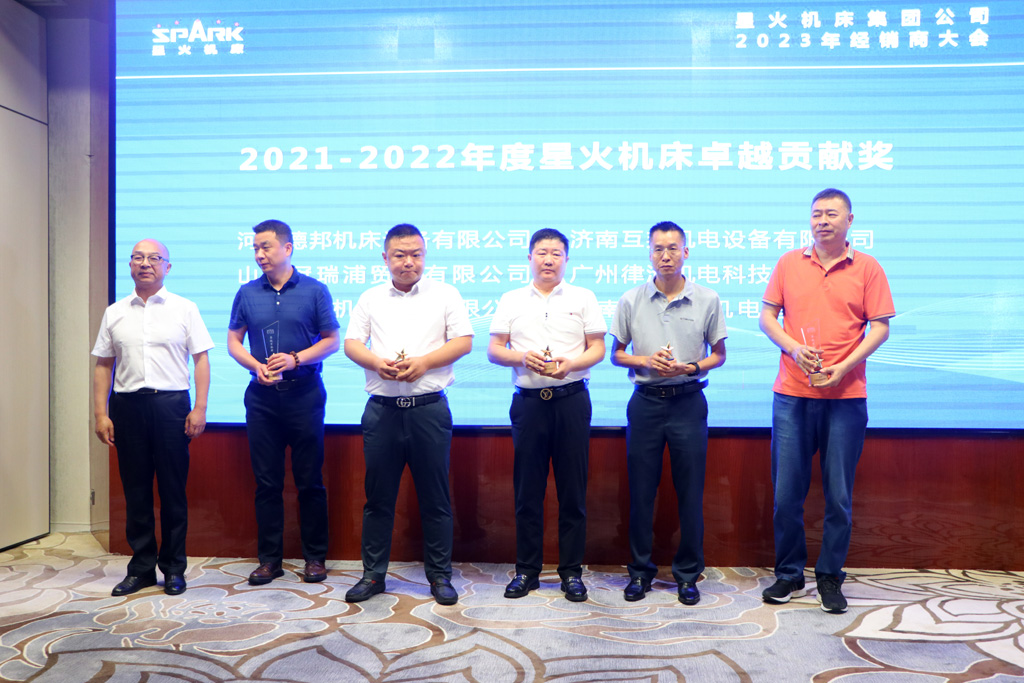 本次大會對優(yōu)秀經(jīng)銷商代表進行了表彰,星火機床集團公司領導現(xiàn)場頒發(fā)了2021——2022年度星火機床卓越服務獎、開拓先鋒獎、卓越貢獻獎、最佳營銷獎等獎項。