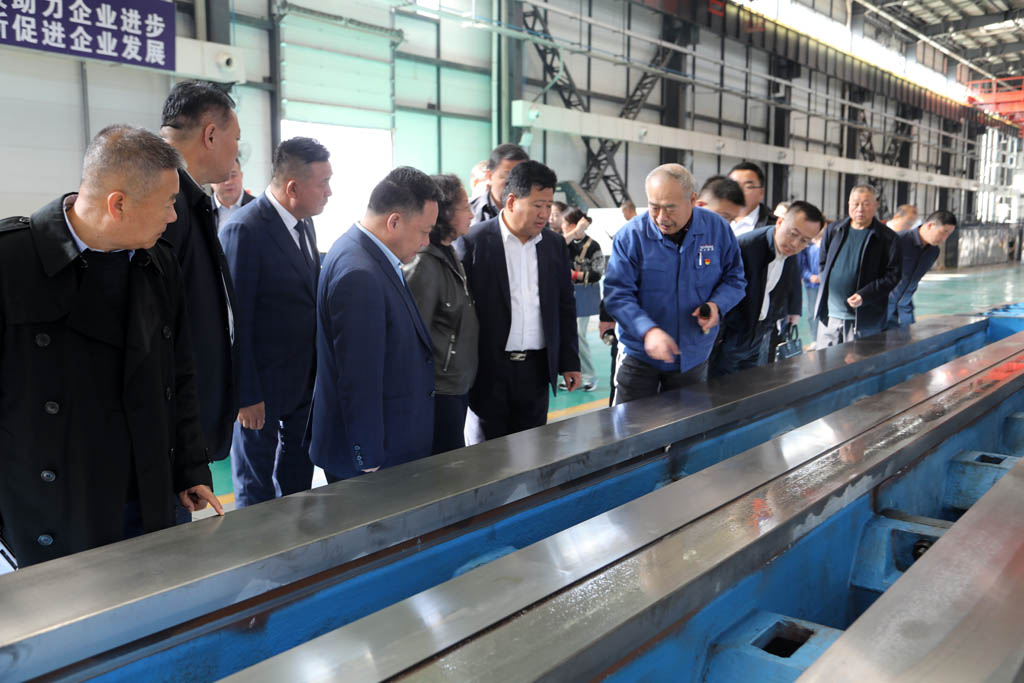 郝效冬一行深入公司裝配生產(chǎn)現(xiàn)場(chǎng),詳細(xì)了解了公司歷史沿革、基本情況、產(chǎn)品研發(fā)、項(xiàng)目建設(shè)等情況,并參觀了公司自主研發(fā)生產(chǎn)的萬能軋輥磨床、五軸聯(lián)動(dòng)機(jī)床、復(fù)合材料纏繞機(jī)床、重型臥式車床等產(chǎn)品。