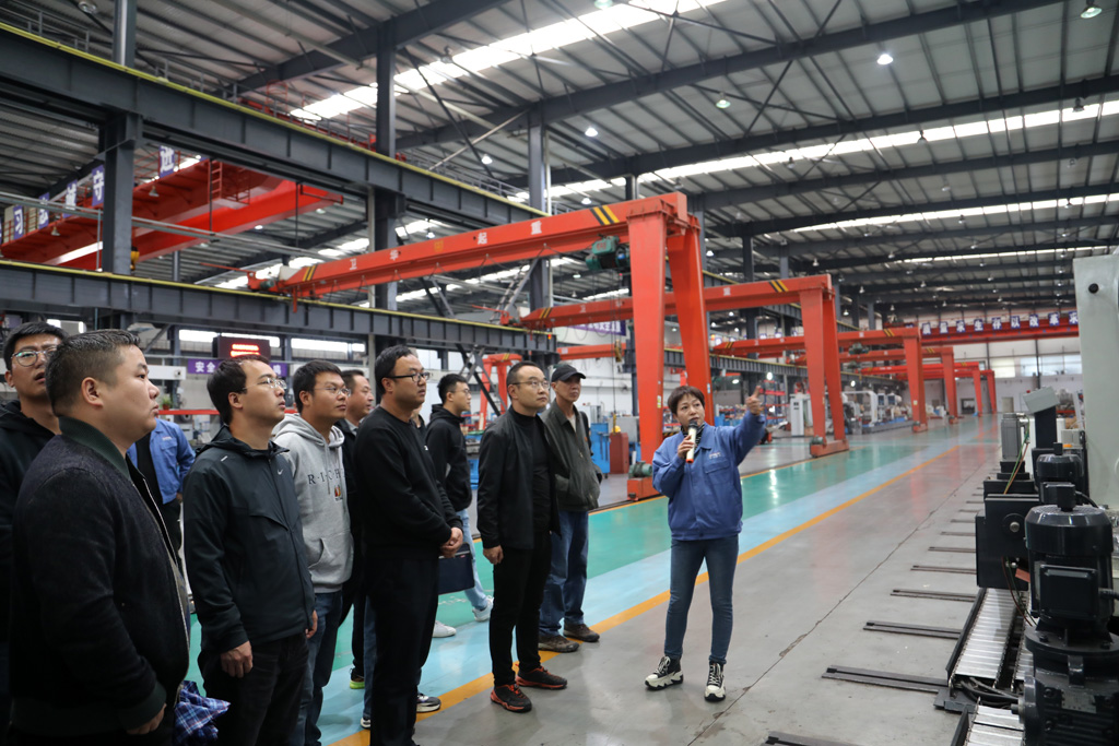 星火機(jī)床集團(tuán)公司黨群工作部部長蔡建欣及公司質(zhì)檢部副部長羅崇寶接待來訪人員并陪同參觀現(xiàn)場(chǎng)。
