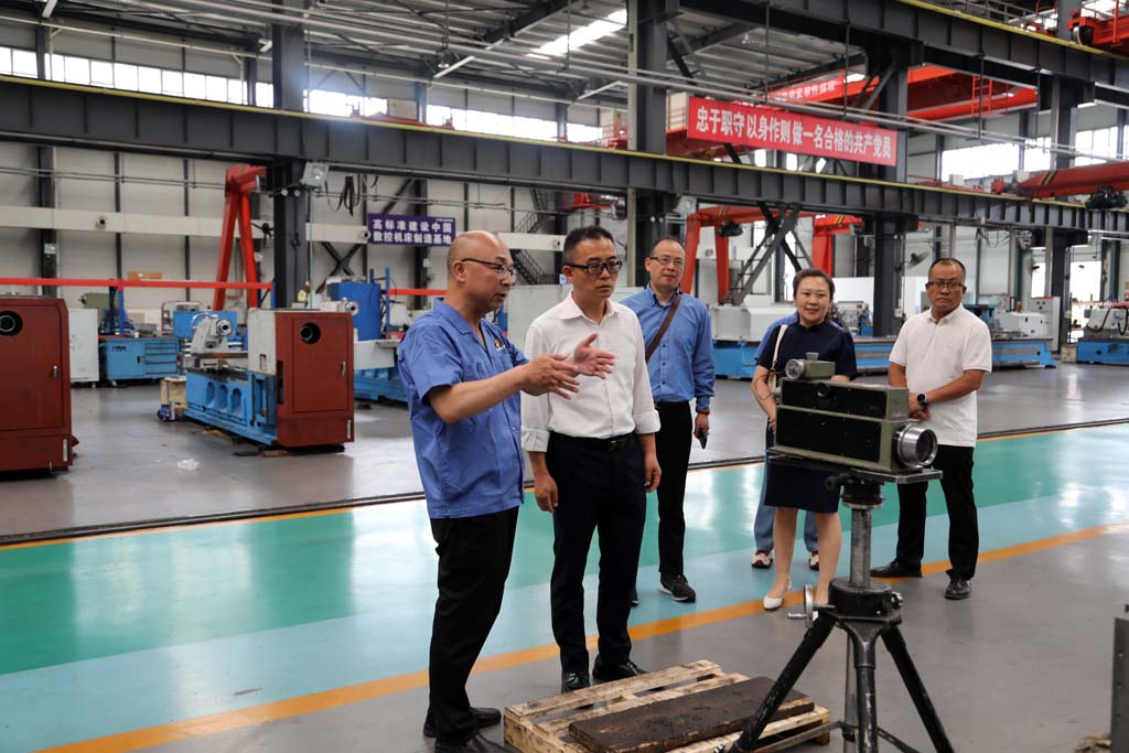 周勝一行在蔣俊陪同下深入工業(yè)園加工車間、裝配車間以及青重公司生產(chǎn)車間,參觀了裝配中的各類車床產(chǎn)品,了解了車床裝配流程。考察中,蔣俊就公司生產(chǎn)經(jīng)營、市場規(guī)模、智能制造、人才培訓、科技研發(fā)等情況向周勝一行作了介紹,并結合裝配中的產(chǎn)品介紹了五軸聯(lián)動機床、軋輥磨床以及青重車輪車機床等產(chǎn)品的性能特點、市場前景以及應用領域等。蔣俊說,星火機床作為曾經(jīng)的“三線”企業(yè),經(jīng)過多年的摸爬滾打,在地區(qū)裝備制造業(yè)中占有一席之地,近年來,公司搶抓國家大力發(fā)展裝備制造業(yè)的機遇,堅持以市場為導向進行創(chuàng)新研發(fā),開發(fā)了一系列新產(chǎn)品,得到了市場的認可。
