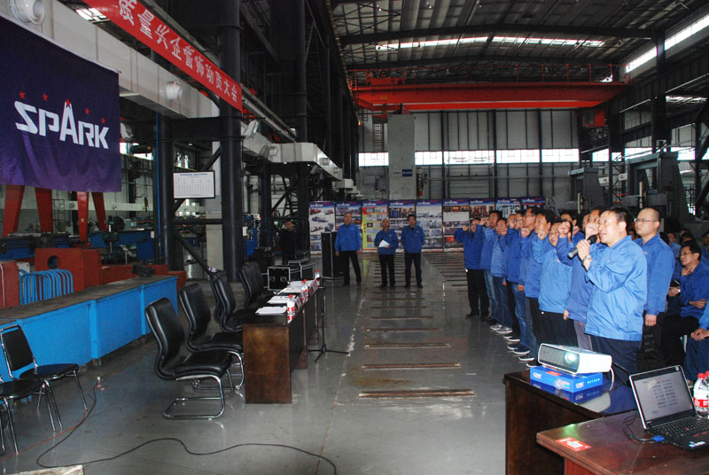5月5日,星火公司召開“星火興亡,我的責(zé)任”質(zhì)量興企誓師動(dòng)員大會(huì)。星火集團(tuán)及星火機(jī)床公司領(lǐng)導(dǎo)蔣保權(quán)、劉勝、趙錦銘、鞠家兵、劉生玉、劉強(qiáng)、展海瑜,各處室領(lǐng)導(dǎo)、各分廠領(lǐng)導(dǎo)、班組長等骨干人員、計(jì)量檢查處全體員工240余人參加大會(huì)。星火集團(tuán)黨委副書記、副總經(jīng)理蔣俊主持會(huì)議。